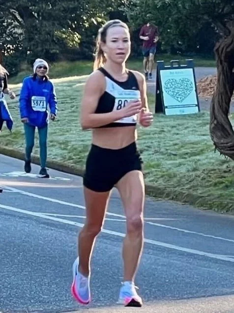 For the first half of the race, three of us women were separated by about ten seconds. Around mile seven, I gradually closed the gap to second place. By mile nine, we’d worked together to catch the leading woman. I was feeling better as the race progressed and tried my hand at sharing the lead. Seeing Dena on the bike and knowing I had loved ones waiting at the finish, helped energize me along the way. At mile ten, one of the women put in a surge. While I wasn’t able to respond, my pace stayed consistent and I managed to hold off third. This was one of the first races where, instead of focusing on mile splits, I practiced the art of competing. I was able to finish second and achieve a nearly four minute PR by way of a negative split. As someone who didn’t run collegiately, I’ve aspired to hone the skill of racing. Training with PDC this past year and a half has opened my eyes to the possibilities with this mindset. Not to mention, the top three women all achieved personal bests that day. An incredible reminder of the power of teamwork.